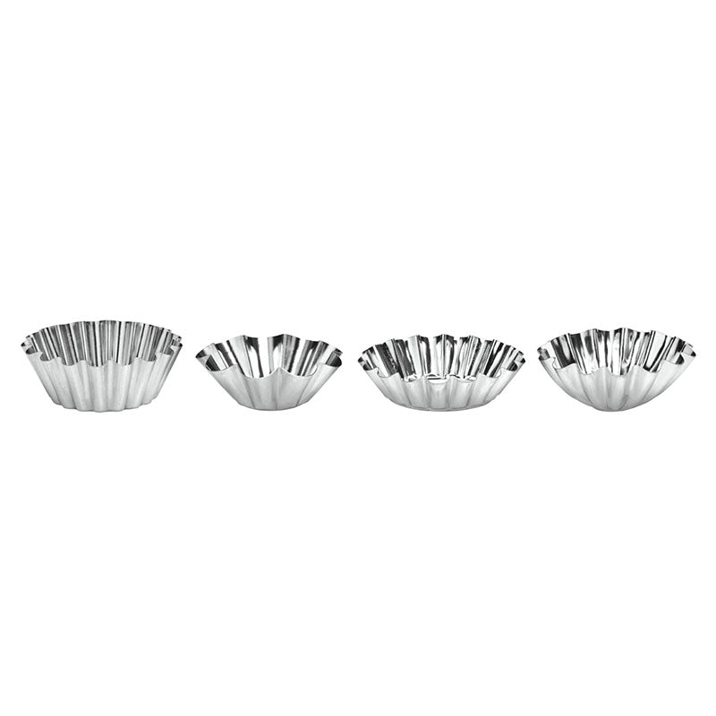 Serve delicious tarts and cupcakes at parties, or anytime, using our eight-round fluted tart cake molds. These silver-colored, non-stick tinplate cake pans are perfect for baking tarts or cupcakes, easy to clean, and perfect for everyday use due to their durability.