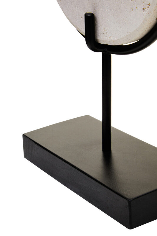 The Tibor large travertine sculpture is a decorative piece with natural textural variation. Its rounded oblong shape with a hollow centre is encased in a sleek metal frame. This modern sculpture adds a touch of natural charm to any interior.*Due to the natural materials used in the creation of these products, slight variations in colour, texture, and size may occur. These natural variations are an inherent characteristic and should be considered part of the unique beauty of each piece.*
