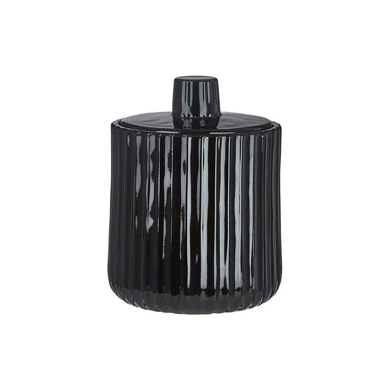 The shallow lid features a small knob that is not only practical but also adds a decorative flourish. Display with the Ticino Brittany glass soap dish, tumbler and lotion dispenser.